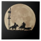 Voller Erntemond mit Windmühle und zwei Cowboys, die die letzte Herde rausholen. Eine wunderschöne kunstvolle Western Kachel.