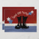 Stiefel auf dem Boden. Individuell anpassbare Militär senden Stationierung Party mit patriotischen roten und blauen Sternen und Kampfstiefel auf bedrücktem patriotischen Hintergrund. Fügen Sie Ihre eigenen Details hinzu. Feiern Sie Ihren Soldaten mit dieser militärischen Einladung und besten Wünschen.