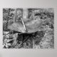 Wunderschöne alte rostige Schubkarre, Harke und Leiter in einem Garten schwarz-weiße Plakatdruck. Naturfotografie von Susan.