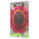 Diese Zwischenablage ist mit einer roten Rostsonnenblume ausgestattet, die mit der Sonne dahinter fast glüht.