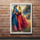 Ruth 1 Ruth geht mit Naomi. In dieser eindrucksvollen Darstellung von Ruth und Naomi nimmt das mächtige Band zwischen den beiden Frauen die zentrale Bühne ein. Ihre geklammerten Hände symbolisieren Loyalität und Vertrauen, während sie gemeinsam eine unsichere Zukunft gestalten. Die ländliche Umgebung mit üppigen Feldern und einer bescheidenen Hütte betont Einfachheit und Demut. Ruths lebendige Kleidung spiegelt ihre Kraft und ihren Mut wider, Naomi auf dieser transformativen Reise zu folgen. Die Szene, die in der zeitlosen Botschaft der Schrift wurzelt, findet ihren Widerstandskraft, Liebe und der Schönheit der gewidmeten Beziehungen in schwierigen Lebenszeiten ihren Widerhall.