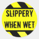 Aufkleber für phantastische Warnzeichen. "SLIPPERY WHEN WET" - Sicherheitszeichen. Machen Sie eine Aussage, verbessern Sie die Sicherheit, verwenden Sie diesen lustigen Aufkleber.