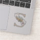 Letter S monogramm floral. Letter S in goldbrauner Textur mit grünen Aquarellfarben Blätter, Blume Blüten und Goldstaub.
