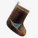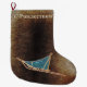 Ein Hund mit einer aquamarinen Schlitte überlagert auf einer digitalen Darstellung von Rentierfellen. Kyrillischer (russischer) Text mit dem Text "S Rozhdestvom" (С Р д с ж ео - Russische Weihnachtsgrüße) erscheint ebenfalls. Sie können den Strumpf personalisieren, indem Sie ein wenig Text auf den Schlitten hinzufügen.