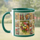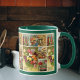 Diese Tasse bietet eine Collage aus Saatgut und Saatgut, die im öffentlichen Bereich erhältlich sind. Das Kunstwerk umfasst Hollyhocks, Süßerbsen und andere Blume sowie Gemüse wie Salat, Wassermelone und Kürbisse. Das Bild ist grün und grün von Jägern umgeben. Die hier gezeigte Tasse hat sowohl innen als auch am Griff eine grüne Naht. Saatgutpackungen und Kataloge helfen, die Geschichten von amerikanischem Bauernleben, Erbe und Kultur zu erzählen, und sie können auch vermitteln, welche Pflanze Sorten während bestimmter Jahre angebaut wurden. Dieses Kunstwerk wurde mit einem Filter behandelt, der Stoff simuliert, was das Vintage Gefühl erhöht. Die meisten Samenkataloge stammen aus den späten 1800er und frühen 1900er Jahren. Der Hintergrund vorne und hinten ist ein cremefarbenes Ekru.