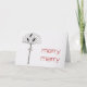 Beschreibung: Auf der Front hocken drei schwarze Vögel auf den bloßen Niederlassungen eines Baums, der mit Mistelzweig geschmückt wird. Der Text liest "fröhliches fröhliches".