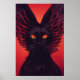 Sabbath The Sorcerer - Black Cat Poster Print - Rot und Schwarz Design mit einer schwarzen Katze mit schwarzen Flügeln. Ideal für Kinderzimmer, Kinder und Tierfreunde.