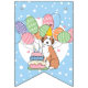 Machen Sie Ihren Aussiedoodle Geburtstag mit unserem bezaubernden Hundeschema mit einem Party-Hut und farbenfrohen Ballons zu einem besonderen Erlebnis.