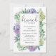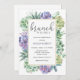 Die Brautdusche lädt zum Brunch oder Mittagessen ein, mit Aquarellsukkulenten in Grün- und lila-Tönen, Eukalyptus-Blätter und botanischen Zweigen mit goldfarbenem Akzent. Passen Sie Ihre Informationen an, damit die Braut sein kann. Klicken Sie auf "Klick um weitere Anpassungen vorzunehmen", um den Stil, die Größe oder die Farbe des Schriftartes zu ändern.