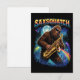 Ein cooler, sonnenbrillentragender Bigfoot shreddert auf einem goldenen Saxophon unter einem Vollmond, während eine Menge in dieser neon-blitzenden, musikgetriebenen Fantasie wild wird.
