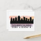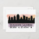 Die moderne Postkarte zeigt die Skyline-Silhouette von Sacramento, CA mit Kartenkoordinaten auf einem Aquarellplatz.