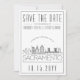 Eine einzigartige Hochzeit speichern das Datum Einladung für eine Hochzeit in der schönen Stadt Sacramento, Kalifornien. Diese Einladung enthält eine stilisierte Abbildung der einzigartigen Skyline der Stadt mit ihrem Namen darunter. Anschließend erhalten Sie Informationen zu Ihrem Hochzeitstag in einem passenden, offenen Stil. Auf der Rückseite der Einladung ist eine tiefe graue Farbe, um das Aussehen und das Gefühl zu ergänzen. Alle Einzelelemente der Einladungskarte sind freigeschaltet. Sie können also alle notwendigen Details wie Schriftart-Größen, Stile und mehr über die Anpassungsfunktion ändern. Viel Spaß beim kreativen sein und es zu Ihrem eigenen machen!