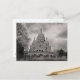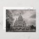 Diese Postkarte erfasst die Sacre Coeur Kathedrale hoch auf dem Gipfel des Butte Montmartre, dem höchsten Punkt der Stadt. Dieses Schwarz-Weiß-Foto fasziniert die wunderschöne Kathedrale mit den umliegenden Bäumen und digital verbesserten Wolken mit einem harten Ölmaleffekt.
