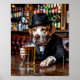 Sad and Lonely Pets Poster Print: "She's Gone" – In this emotionally charged artwork, a sorrowful male dog dressed in a vintage suit and fedora sits alone at a dimly lit bar, nursing a bottle of beer. His posture is slouched, his gaze empty—he's trying to drink away the memory of a love that's vanished. The ambiance is nostalgic and moody, capturing the melancholy of heartbreak with surreal and whimsical undertones. This piece blends anthropomorphic storytelling with retro noir vibes, perfect for those who appreciate humor tinged with pathos.
