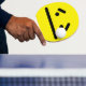 Sad Blank Face Gelb Ping Pong Paddle Tischtennis Schläger