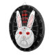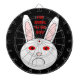 Dieses phantastische Dartboard zeigt das traurige Gesicht eines weißen Kaninchens. Dieses Kaninchen hat einen großen Frosch auf dem Gesicht, weil es ein Labrador-Kaninchen ist, auf dem Kosmetika getestet wurden. Die weißen Augen sind rot und geschwollen. Das Design wurde entwickelt, um das unnötige Leid, das durch die Untersuchung von Kosmetika an Tieren entsteht, in den Blick zu rücken. Der fette rote Text lautet "Stoppt Tierversuche jetzt!"
