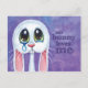 No Bunny Lieben Ich trauerte Kaninchen Postkarte mit einer skurrilen Abbildung eines weinenden weißen Kaninchen. Das Kaninchen hat eine herzförmige rosa Nase und große reißende Augen. Kunstwerk © Lisa Marie Robinson. Alle Rechte vorbehalten.