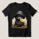 This adorable t-shirt features a cute puppy wearing a raincoat, holding a delicate flower in a soft watercolor style.
