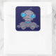 Vector Cartoon Illustration eines niedlichen, aber traurigen kleinen Roboters mit blauen Augen auf dem Boden.