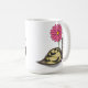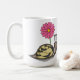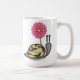 Sadie die Pisley-Schnecke lächelt, während sie in ihrer gestreiften Muschel unter ihren Lieblings-rosa Blume mitrollt. Diese Tasse ist in verschiedenen Größen und Stilen erhältlich.