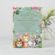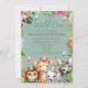 Geburtstagsfeier Safari Wild One Floral Kids lädt zum Geburtstag ein, mit einem grünen Hintergrund und niedlichen Aquarelldesigns von Löwen, Giraffen, Elefanten und Zebra mit Party-Hüten, umgeben von wilden Dschungel-Blume. Sie können den Namen und Geburtstag Ihres Kindes personalisieren.
