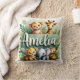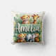 Gemütliches dekoratives Kissen mit niedlichen Dschungeltieren und üppiger Vegetation mit dem Namen Amelia in stilvoller Schrift. Perfekter Akzent für Kinderzimmer, Spielzimmer oder jeden Safari-Bereich. Weiche, langlebige Stoffe in lebhaften Farben. Kann mit jedem Namen erstellen - kontaktieren Sie mich einfach!