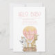 Wenn Sie einfach boho Stil Liebe, ist diese Einladung richtig für Sie. Die Einladung zeichnet sich durch ein elegantes Design mit einem weichen, weißen Hintergrund aus. In der Mitte sind die Details des Party wunderschön in einem rosa Text gestaltet, der eine raffinierte Atmosphäre ausstrahlt. Niedliche Safaritiere sitzen in einem Heißluftballon unten. Das Party ist stilvoll eingerichtet und lädt zum Entspannen ein. Hintergrundfarbe und Text können bearbeitet werden.