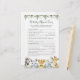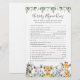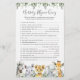 Safari-Tiere themed Baby Dusche Kinderzimmer Rhyme Quiz Spielkarte bietet eine Aquarell Safari Tier Illustration und Aquarell Grüne eucalyptus Garland und elegante handgeschriebene Stil Schriftart.