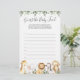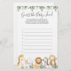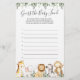 Safari-Tiere Thema Babydusche Raten Sie, die Baby-Food-Game-Karte bietet eine Aquarell Safari Tier Illustration und Aquarell Grüne eucalyptus Garland und eleganten handgeschriebenen Stil Schriftart.