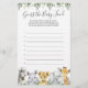 Safari-Tiere Thema Babydusche Raten Sie, die Baby-Food-Game-Karte bietet eine Aquarell Safari Tier Illustration und Aquarell Grüne eucalyptus Garland und eleganten handgeschriebenen Stil Schriftart.
