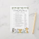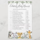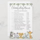 Safari-Tiere themed Baby Dusche Berühmtheit Baby-Namen-Spielkarte bietet eine Aquarell Safari Tier Illustration und Aquarell Grüne eucalyptus Garland und elegante handgeschriebene Stil Schriftart.