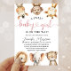Celebrate the upcoming arrival with our "Safari Baby" Shower baby shower invitation! The design features a group of adorable jungle animals and rustic tropical greenery leaves, perfect for a unique safari-themed baby shower. Personalize your invites today and start the celebration!