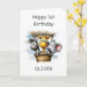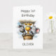Celebrate a little one’s big milestone with this 1st birthday card featuring a lion, zebra and elephant in a hot air balloon.