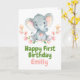 Niedliche Safari Baby Elefanten Geburtstagskarte perfekt für Ihr erstes Geburtstagsfest!