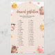 Diese bezaubernde Baby-Duschspielkarte besticht durch ein charmantes Landtier mit niedlichen Illustrationen einer Kuh, eines Hasen, Küken, Pferd und Schweins, umgeben von fröhlichen Blume und einer lächelnden Sonne. Die sanften Pastellfarben und das skurrile Design schaffen eine warme und einladende Atmosphäre. Besuchen Sie unseren Shop, um unsere gesamte Brown Niedlich Farm Animal Kollektion zu sehen.