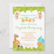 Safari oder Dschungel Thema Baby Dusche Einladung mit niedlichen Tieren. Ideal für eine neutrale Babydusche.