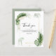 Elegante Safari Tiere Baby Dusche Dankeschön Karte mit einer Giraffe, einem Elefanten, Goldfolie und grünen Blätter. Ideal für das Sprichwort dank der Freunde und Familie, die auftauchten, um die Kleine mit ihrer Liebe und Geschenke zu feiern.