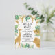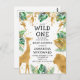 Die Babydusche zum Thema "Wilder-Dschungel-Safari" lädt mit goldenen Imitaten (Giraffen, Löwen und Affen), goldenem und grünem Dschungelblättern und einer Sprinklerei Goldkonfetti auf weißem Hintergrund zum Verweilen ein. Fügen Sie den Namen der Mutter-zu-sein und Dusche Details in schwarzem Text.