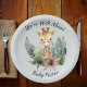 Wir sind wild über diese Safari-Teller mit einem bezaubernden Baby-Giraffe. Personalisieren Sie, um sie zu Ihrem eigenen zu machen. Sie sind der perfekte Weg, um Ihre Liebe und Begeisterung über ein kleines zu zeigen. Ideal für Babyduschen oder Geburtstage!