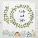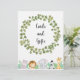 Safari-Karten und Geschenke-Thema mit bezaubernden Zootieren und einem schönen, von Twin Spirit Designs gefertigten grünen Kranz.
