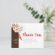 Eine elegante Hochzeit danke Ihnen Kartendesign mit einer Mischung aus schönen Sommer Safari Wüste boho Blume mit Korallenrot und dunkelbraune Typografie.