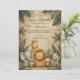 Welcome guests to a warm and whimsical celebration with this Safari-themed baby shower design. Featuring a sweet trio of jungle friends — a giraffe, elephant, and lion — framed by rich boho foliage, earthy neutrals, and soft natural textures.