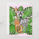 Safari-Freunde, Giraffe, Zebra, Tiger, Palm-Blätte Einladung