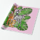 Safari-Freunde, Giraffe, Zebra, Tiger, Palm-Blätte Geschenkpapier