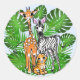 Safari-Freunde, Giraffe, Zebra, Tiger, Palm-Blätte Runder Aufkleber