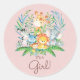 Niedlich Es ist ein Mädchen Safari Dschungeltiere Baby Dusche Gefallen Aufkleber für eine Mädchen Babydusche. Unser niedlicher Dschungeltieraufkleber mit Giraffe, Löwe, Affe, Elefanten-Zebra & Hippo-Set auf einem rosa Hintergrund. Matching Artikel in unserem Shop erhältlich.