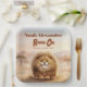 Safari theme first birthday paper plates featuring an original character from the Hystrix Little Thoughts® collection. This design features Zuberi: a charming fluffy leopard character, whose name means “strong” and “powerful,” adding a meaningful and symbolic touch to this “Roaring One” birthday. Set in a soft watercolor African safari landscape with warm earth tones, gentle hills, and acacia trees, this invitation creates a sweet and adventurous atmosphere, perfect for a wild one safari party or baby boy first birthday.