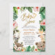Jungle Safari Animal Tropical Floral Greenery Gold Script Niedliche Baby Shower Einladungskarte. Feiern Sie die bevorstehende Ankunft Ihres wertvollen Babys mit dieser festlichen, schicken und schönen Einladungskarte. Sämtliche Texte sind so vorbereitet, dass Sie mit Ihrem Baby Duschdetails einfach und schnell personalisieren können.