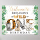 Safari Wild Geburtstagsparty Poster. Geben Sie zum Personalisieren den Text anstelle des Beispiels in das obige Bearbeitungsfeld ein. Sie können auch die Schriftart und die Schriftart Farbe und Größe ändern, wenn Sie möchten.