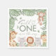 A safari-themed “Wild One” baby shower napkin featuring watercolor jungle animals and lush tropical greenery. Perfect for adding a cohesive decorative touch to a Wild One, jungle, or gender-neutral baby shower. Ideal for coordinating with matching party stationery and table décor.